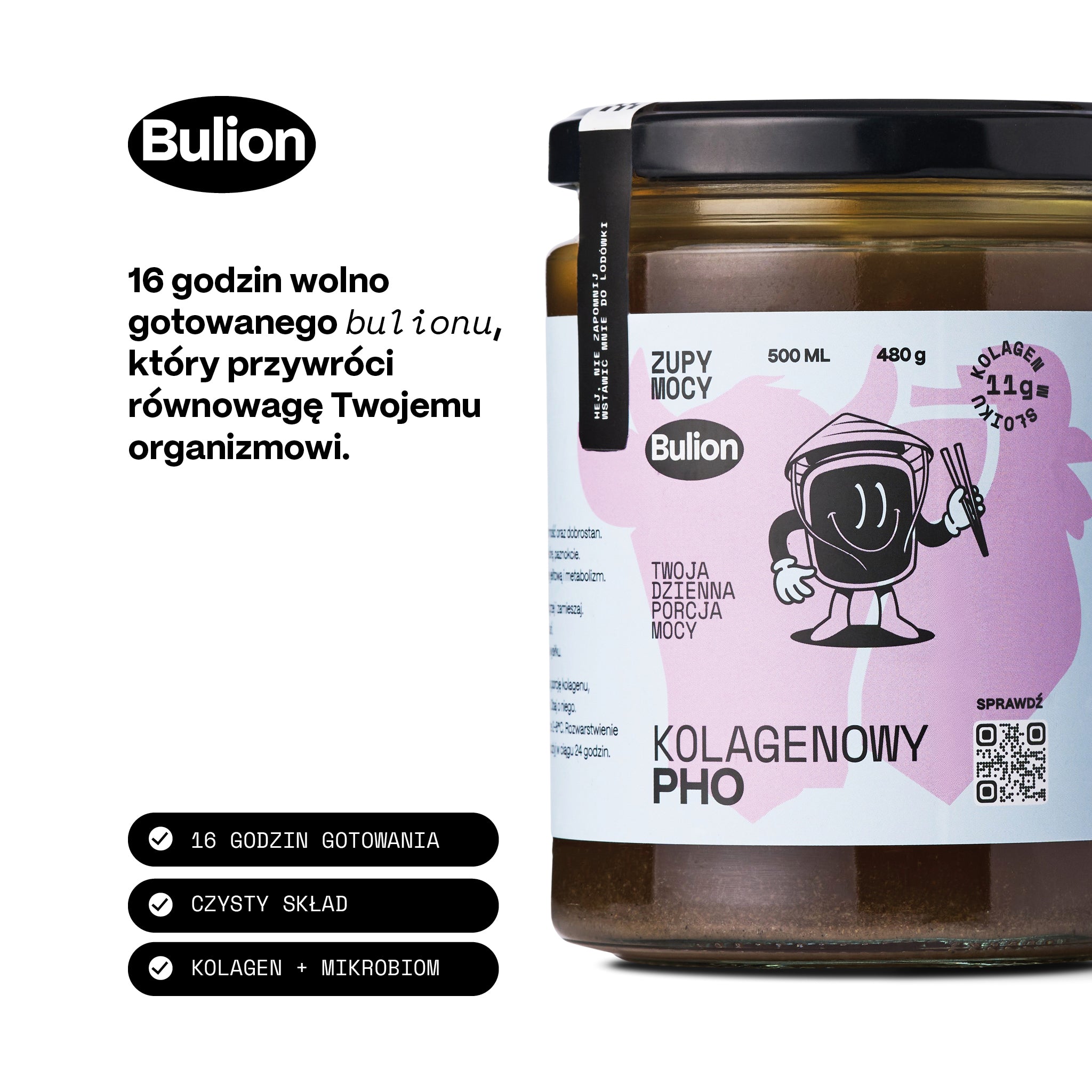 Pij na ciepło – najlepiej rano, aby rozgrzać organizm i dostarczyć mu wartości odżywczych już od startu dnia. Świetnie sprawdza się po treningu, w trakcie regeneracji oraz wieczorem, kiedy chcesz się wyciszyć i przygotować do snu. Możesz używać go jako bazy do orientalnych zup, ramenów, sosów czy potrawek, by wzbogacić smak i wartości odżywcze swoich dań. Szczególnie polecamy regularne picie porcji ciepłego bulionu na czczo – to sprawdzony rytuał w dietach regeneracyjnych i tradycyjnych kuchniach Azji oraz współczesnej dietetyce funkcjonalnej. Gotowy w 3 minuty – wystarczy podgrzać.