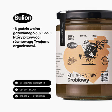 Odkryj siłę Zupy Mocy. Dzięki 14 g białka, naturalnemu kolagenowi i aminokwasom każda porcja wzmacnia jelita i odporność. Gotowy w 3 minuty – idealny, gdy potrzebujesz regeneracji i ciepła. Dla osób aktywnych, ale także dla osób osłabionych, w trakcie rekonwalescencji, seniorów oraz dbających o zdrową skórę i jelita. Rozgrzewa, wzmacnia, odżywia – codzienna porcja mocy w zupie. Pij solo lub dodawaj do zup i dań.