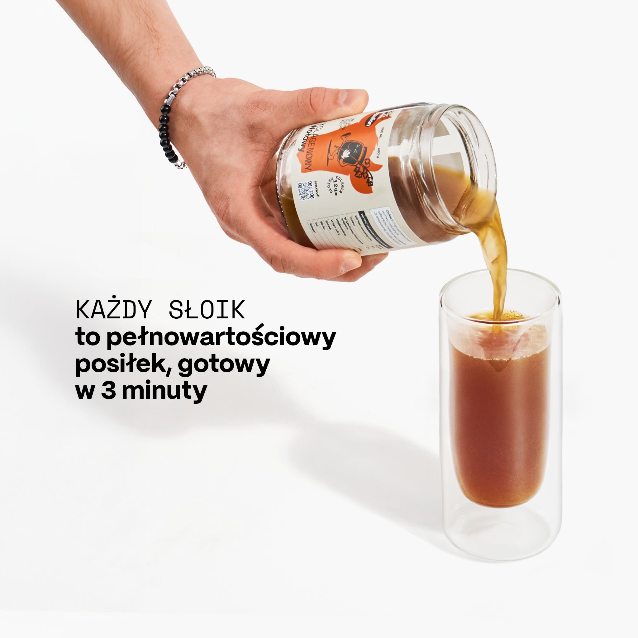 Odkryj siłę Zupy Mocy. Dzięki 16 g białka, naturalnemu kolagenowi, aminokwasom i przyprawom tajskim każda porcja wzmacnia jelita, odporność i zmysły. Gotowy w 3 minuty – idealny, gdy potrzebujesz regeneracji, rozgrzania i wyjątkowego smaku inspirowanego kuchnią Tajlandii. Dla osób aktywnych, ale także dla osób osłabionych, w trakcie rekonwalescencji, seniorów oraz dbających o zdrową skórę i jelita. Rozgrzewa, wzmacnia, odżywia – codzienna porcja mocy w zupie. Pij solo lub dodawaj do zup i dań.