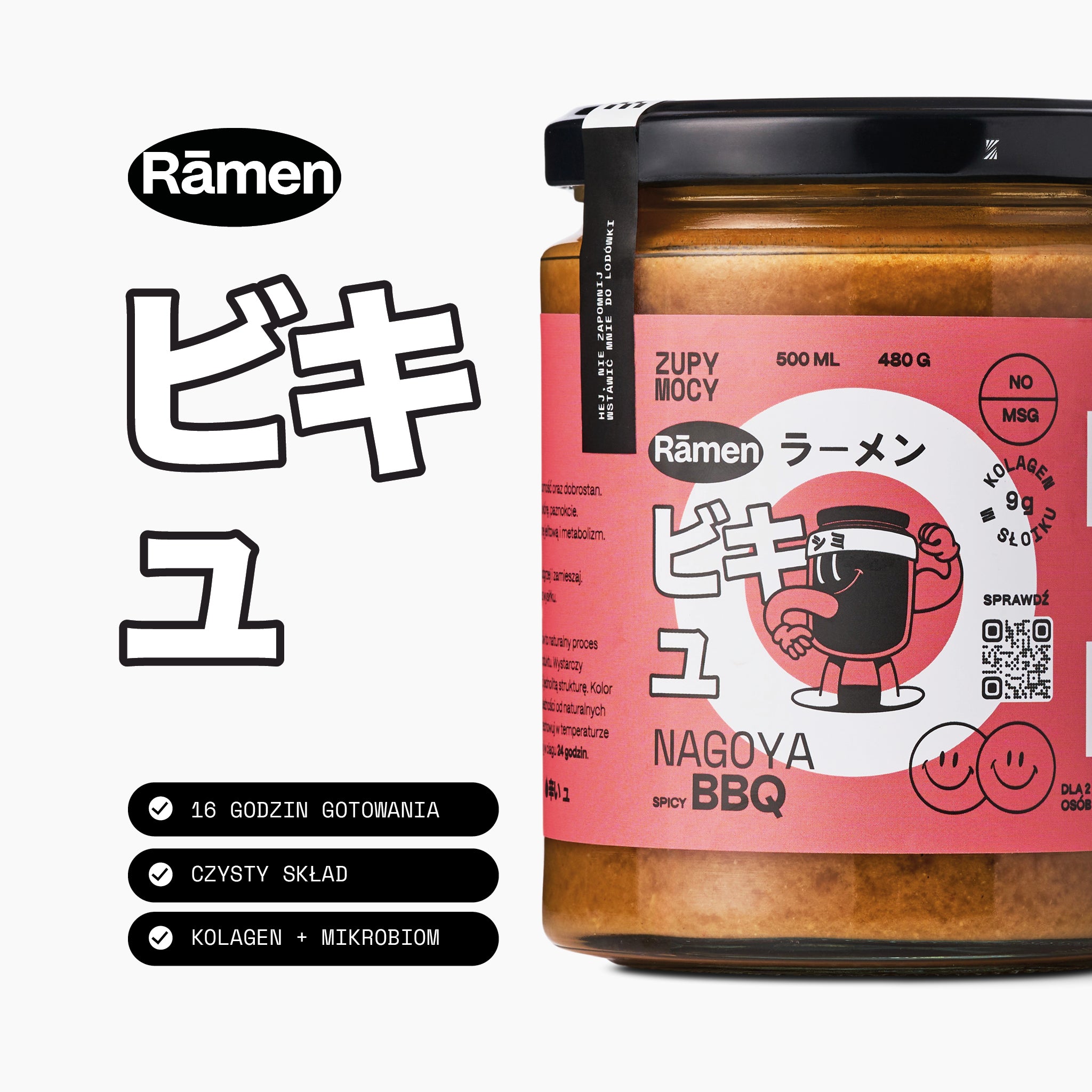 Odkryj siłę Zupy Mocy. Dzięki naturalnemu kolagenowi, aminokwasom i aromatycznej kombinacji podwójnego miso, toban djan i mleka kokosowego każda porcja wzmacnia jelita i odporność. Gotowy w 3 minuty – idealny, gdy potrzebujesz regeneracji, ciepła i pełnego, wyrazistego smaku. Dla osób aktywnych, ale także dla osób osłabionych, w trakcie rekonwalescencji, seniorów oraz dbających o zdrową skórę i jelita. Rozgrzewa, wzmacnia, odżywia – codzienna porcja mocy w formie ramenu. Pij solo lub używaj jako bazy do pełnej, aromatycznej miski ramenu.